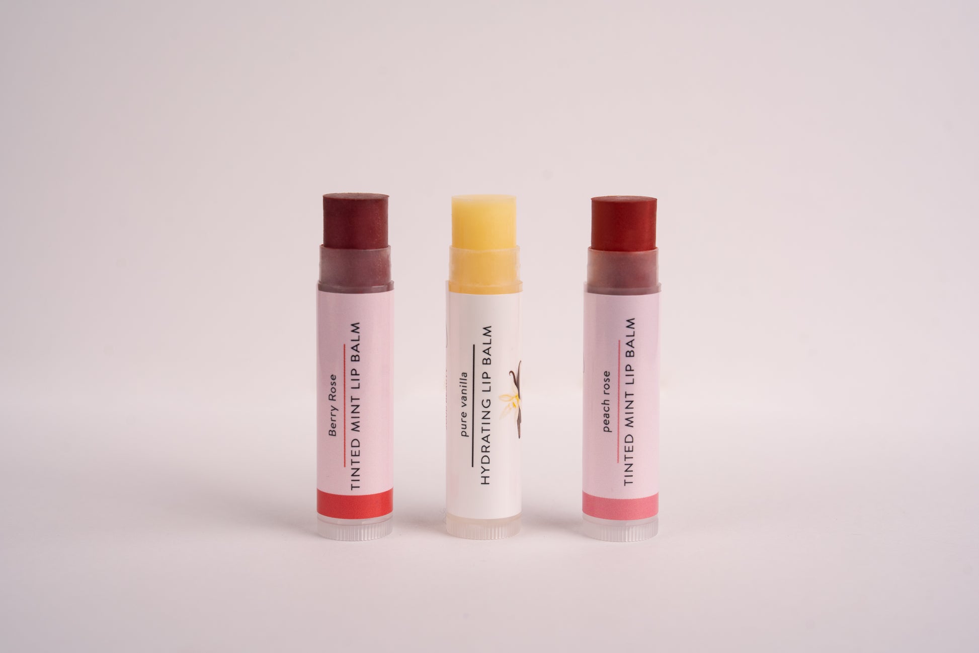 Ingredients: Organic Castor Oil, Organic Beeswax, Organic Cocoa Butter, Organic Coconut Oil, Organic Vanilla Flavor, Organic Argan Oil, Organic Peppermint Oil, Organic Aloe Vera Oil, Mixed Tocopherols (Vitamin E), Titanium Dioxide, Iron Oxide, Mica.